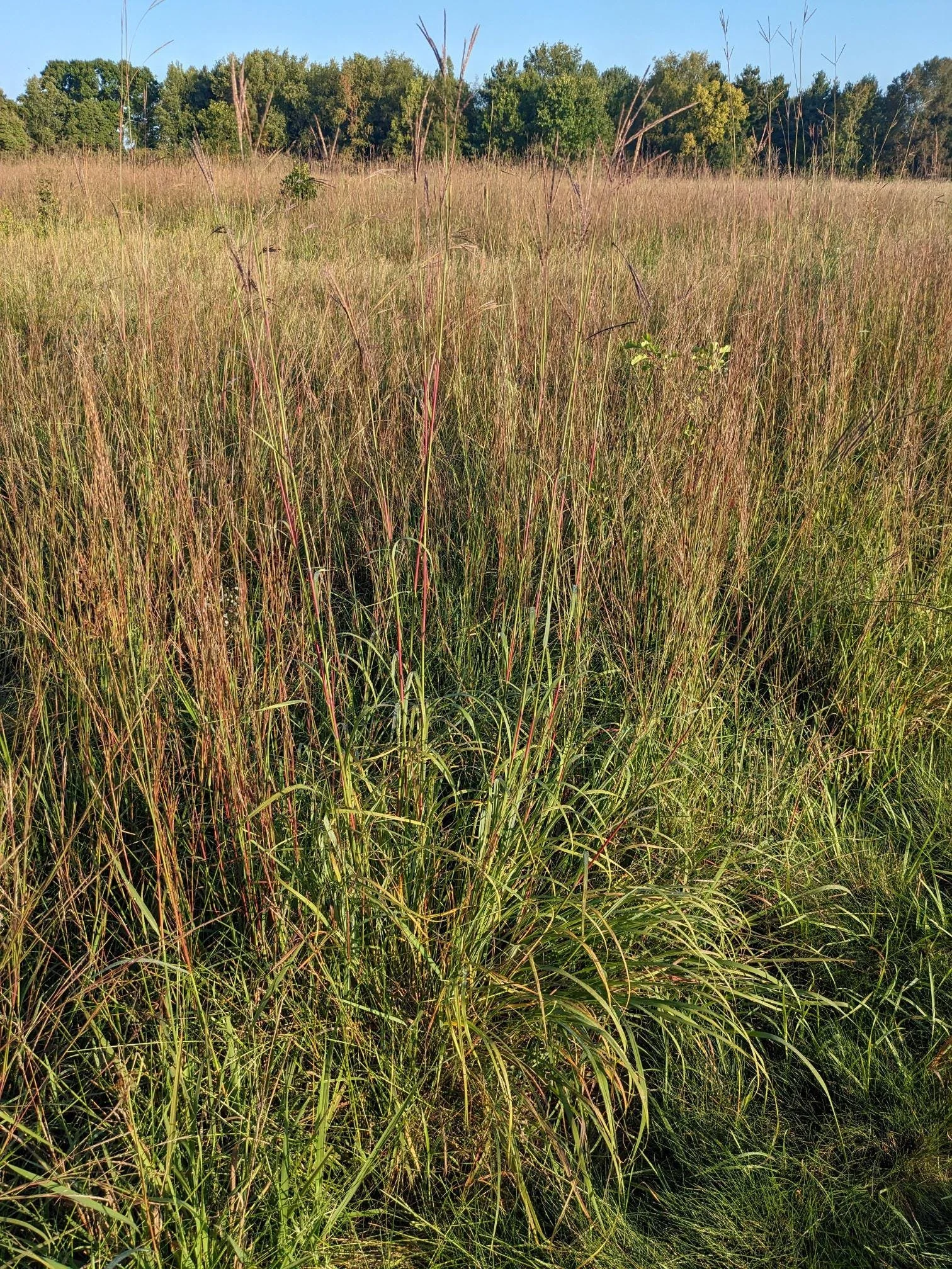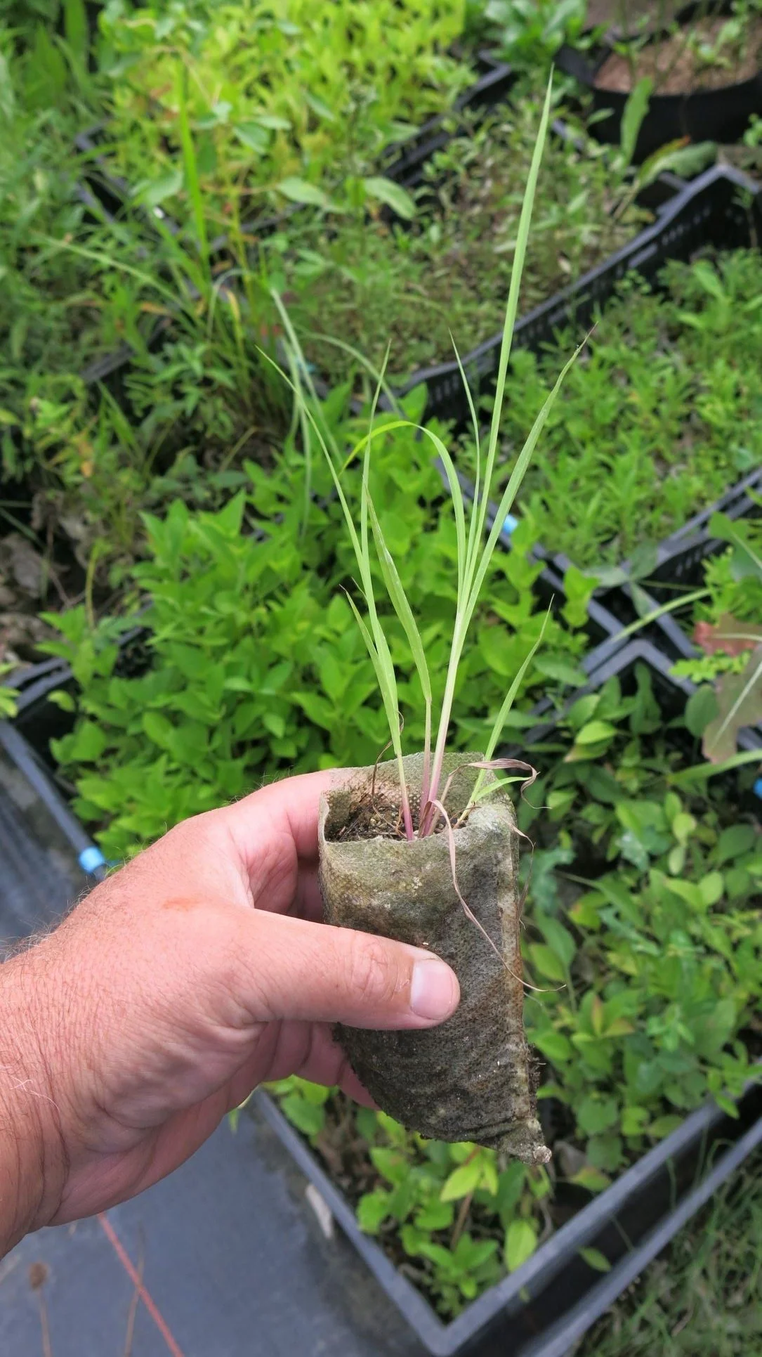 Big bluestem (Andropogon gerardi) native grass starter plant. Tall native prairie grass. Will grow over 6ft tall. Beautiful fall color. Year round interest.