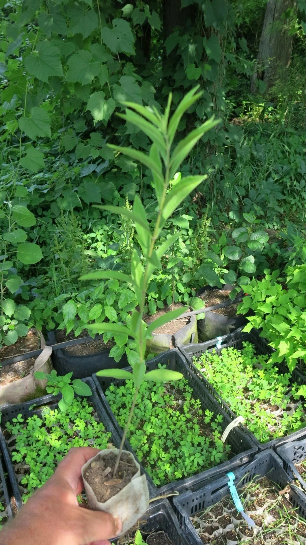 The best place for our plants is in the ground. Do not grow in black plastic nursery pots "till they get bigger" Black plastic pots do not provide good aeration, get very hot, and will cause root circling and poor growth. Although being small, native plants often grow extensive root systems, often more than the visible foliage. When planted in the ground they will have the best chance to work on their roots.