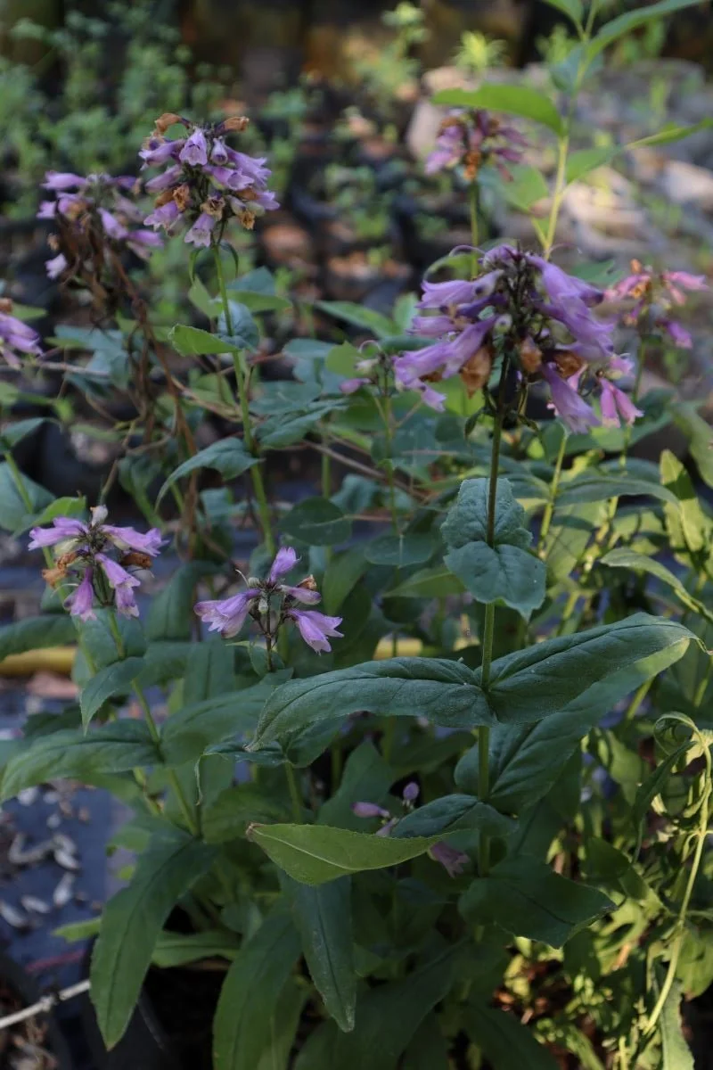 Calico Beardtongue Penstemon calycosus starter plant. Similar in size and looks as Foxglove beardtongue (2ft tall) but likes a partially sunny to shady spot and has more pinkish tubular flowers in early summer. Host plant for Baltimore checkerspot butterfly.