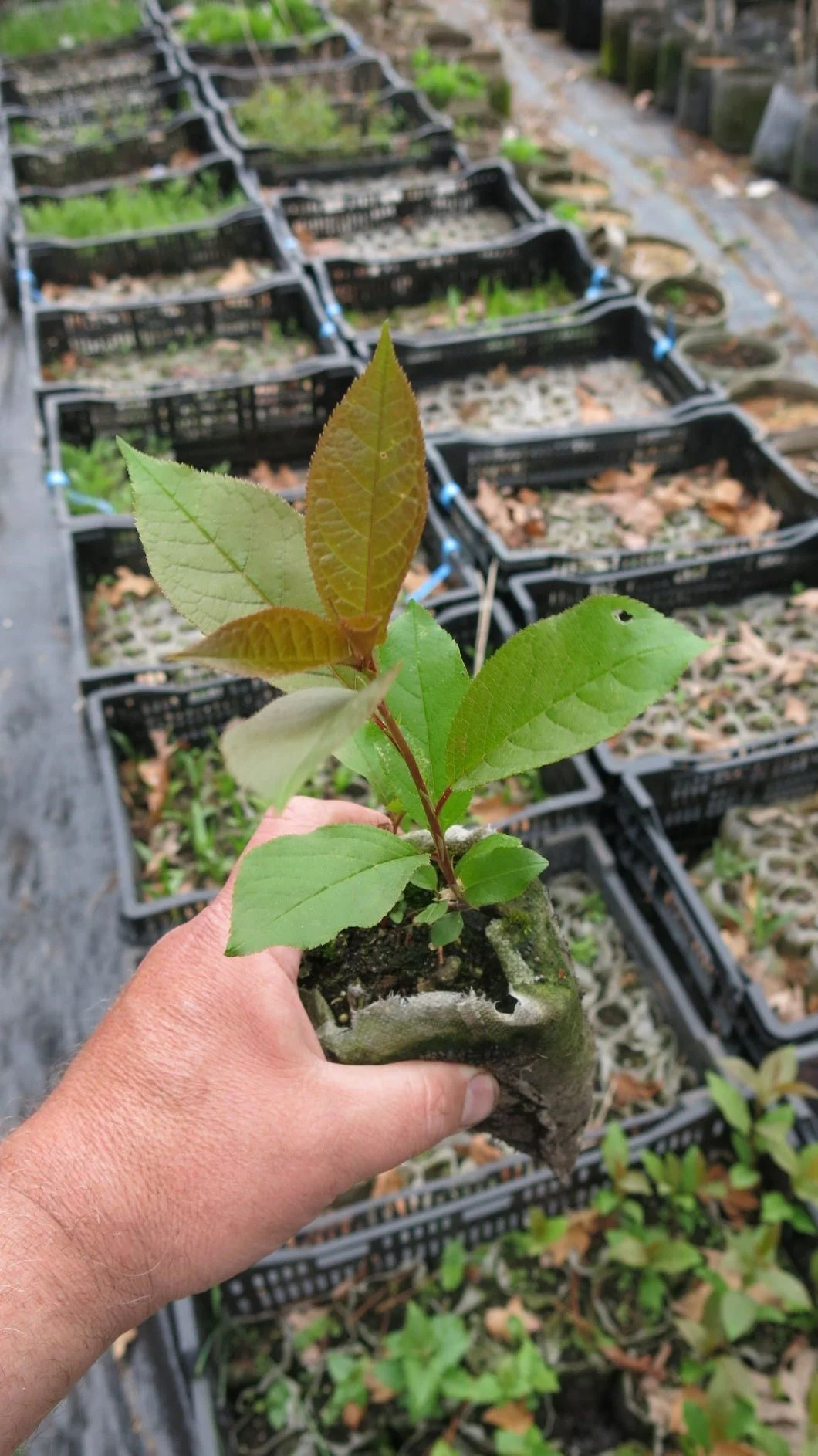 The best place for our plants is in the ground. Do not grow in black plastic nursery pots "till they get bigger" Black plastic pots do not provide good aeration, get very hot, and will cause root circling and poor growth. Although being small, native plants often grow extensive root systems, often more than the visible foliage. When planted in the ground they will have the best chance to work on their roots.