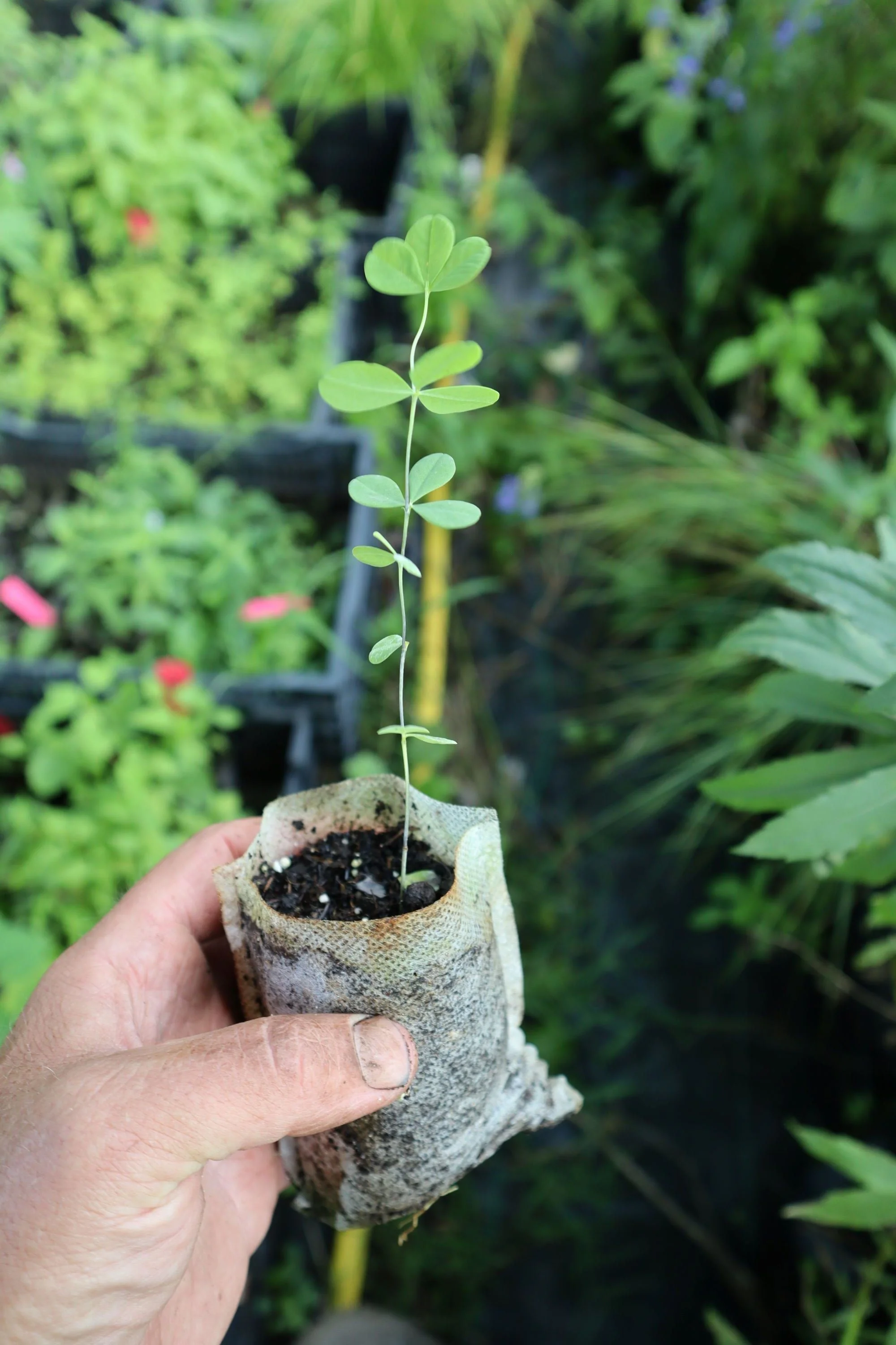 Dwarf blue idigo starter plant (Baptisia australis var. minor) Similar to blue indigo, but a natural variation that is shorter in stature. Like blue indigo it is slow growing, taking around 3 years to flower. Likes a well drained medium to dry, sunny location. Like most legumes, is a nitrogen fixer. Beautiful blue flowers in early summer. Slow growing in years 1 and 2. It is working on roots so keep large aggressive plants away and plant where there roots can expand.