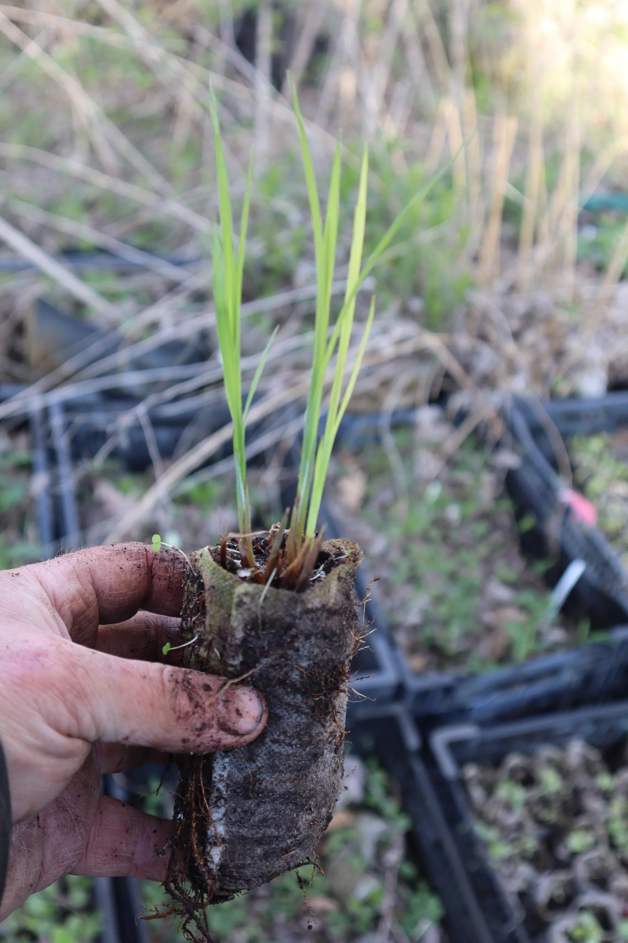 The best place for our plants is in the ground. Do not grow in black plastic nursery pots "till they get bigger" Black plastic pots do not provide good aeration, get very hot, and will cause root circling and poor growth. Although being small, native plants often grow extensive root systems, often more than the visible foliage. When planted in the ground they will have the best chance to work on their roots.