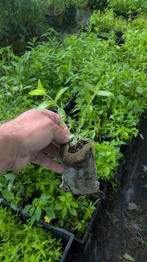 The best place for our plants is in the ground. Do not grow in black plastic nursery pots "till they get bigger" Black plastic pots do not provide good aeration, get very hot, and will cause root circling and poor growth. Although being small, native plants often grow extensive root systems, often more than the visible foliage. When planted in the ground they will have the best chance to work on their roots.