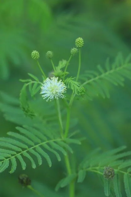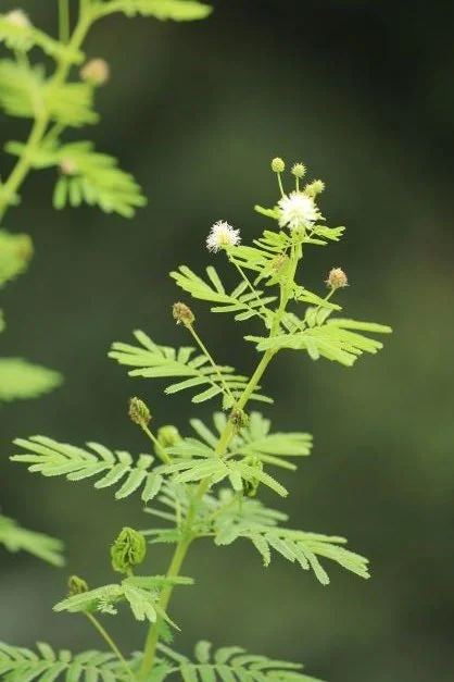 Illinois Bundleflower (Desmanthus illinoensis) starter plant . Native sun loving prairie plant with unique foliage. Small ball like greenish white flowers. Attracts butterflies and birds like the seeds.