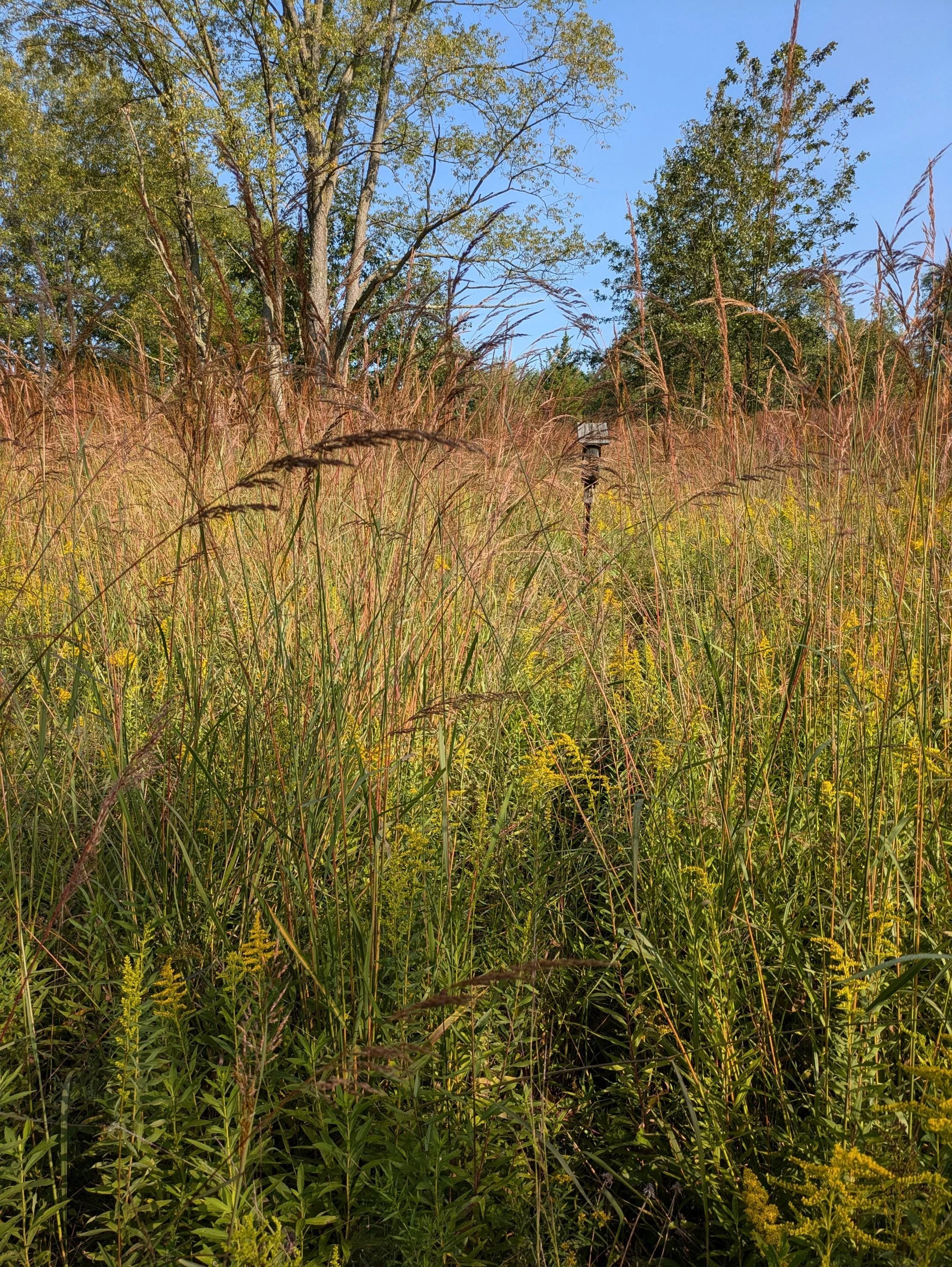 • Some natives like blue lobelia, cardinal flower, monkey flower, tall bell flower, and sneezeweed will keep low foliage all winter, but won’t start actively growing again till spring. We suggest covering these with pine needles, leaf litter, or a frost blanket to protect them from heavy freezes.