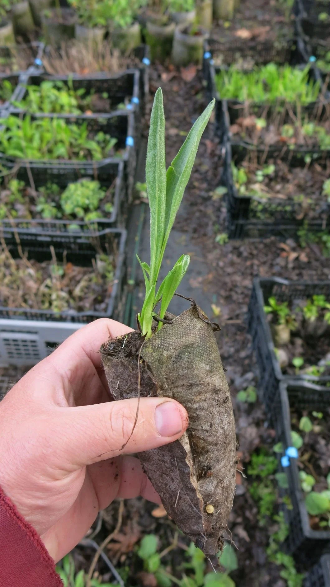 The best place for our plants is in the ground. Do not grow in black plastic nursery pots "till they get bigger" Black plastic pots do not provide good aeration, get very hot, and will cause root circling and poor growth. Although being small, native plants often grow extensive root systems, often more than the visible foliage. When planted in the ground they will have the best chance to work on their roots.