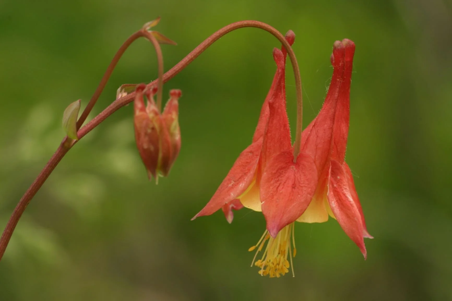 Aquilegia canadensis. Native columbine. Wonderful plant for woodland/ shade pollinator gardens, but is adaptable to many other areas. Gets 2-3 ft. Fairly easy to grow, but usually takes a couple years to flower.
