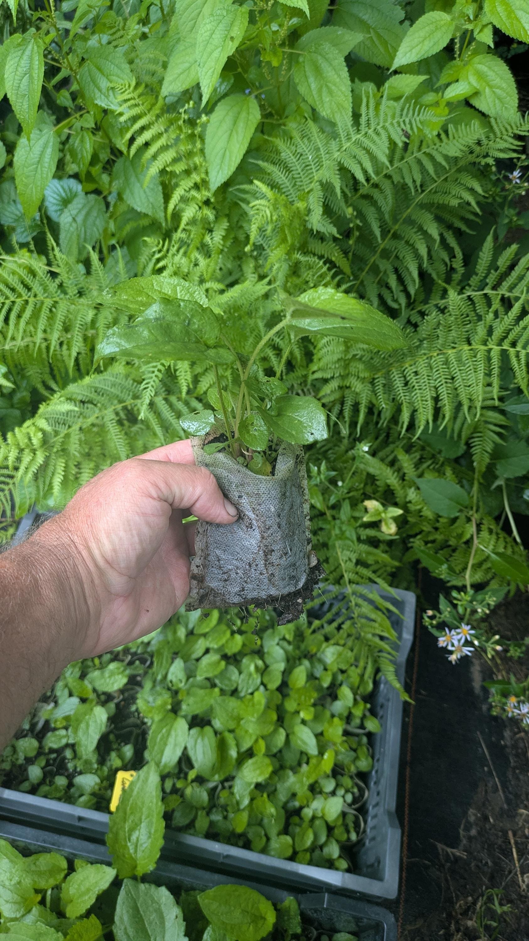 The best place for our plants is in the ground. Do not grow in black plastic nursery pots "till they get bigger" Black plastic pots do not provide good aeration, get very hot, and will cause root circling and poor growth. Although being small, native plants often grow extensive root systems, often more than the visible foliage. When planted in the ground they will have the best chance to work on their roots.