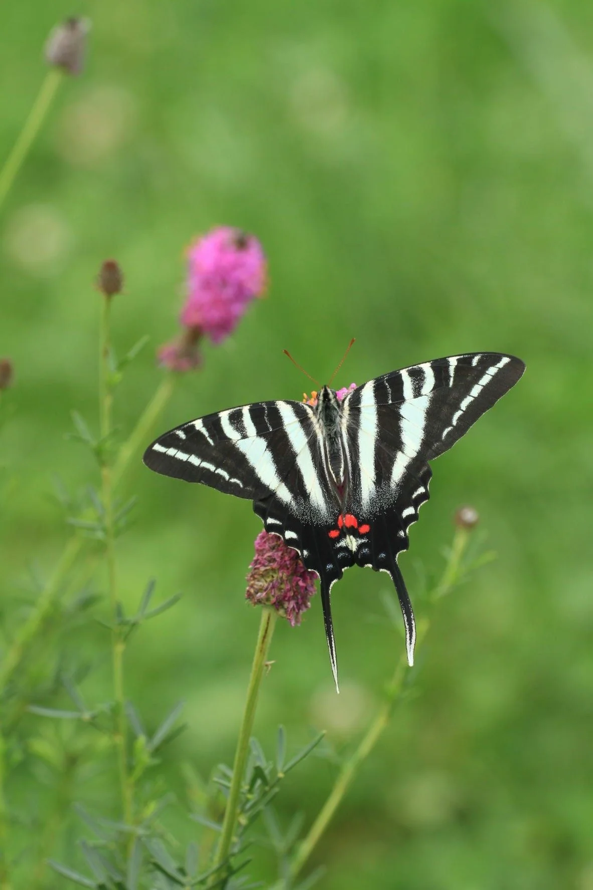 Purple Prairie Clover Dalea purpurea starter plant. One year old plant grown in biodegradable pot. Sun loving perennial native for medium to dryer soils. Adds nitrogen to soil. Flowers attract butterflies and other pollinators.
