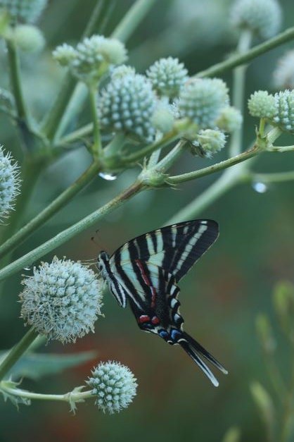 Rattlesnake Master Eryngium yuccifolium Starter Plant. Unique prairie perennial plant for butterfly/ pollinator gardens. Green flowers in mid summer. 4ft with yucca like leaves. Gets 4-5 ft and like a sunny medium to medium dry location.