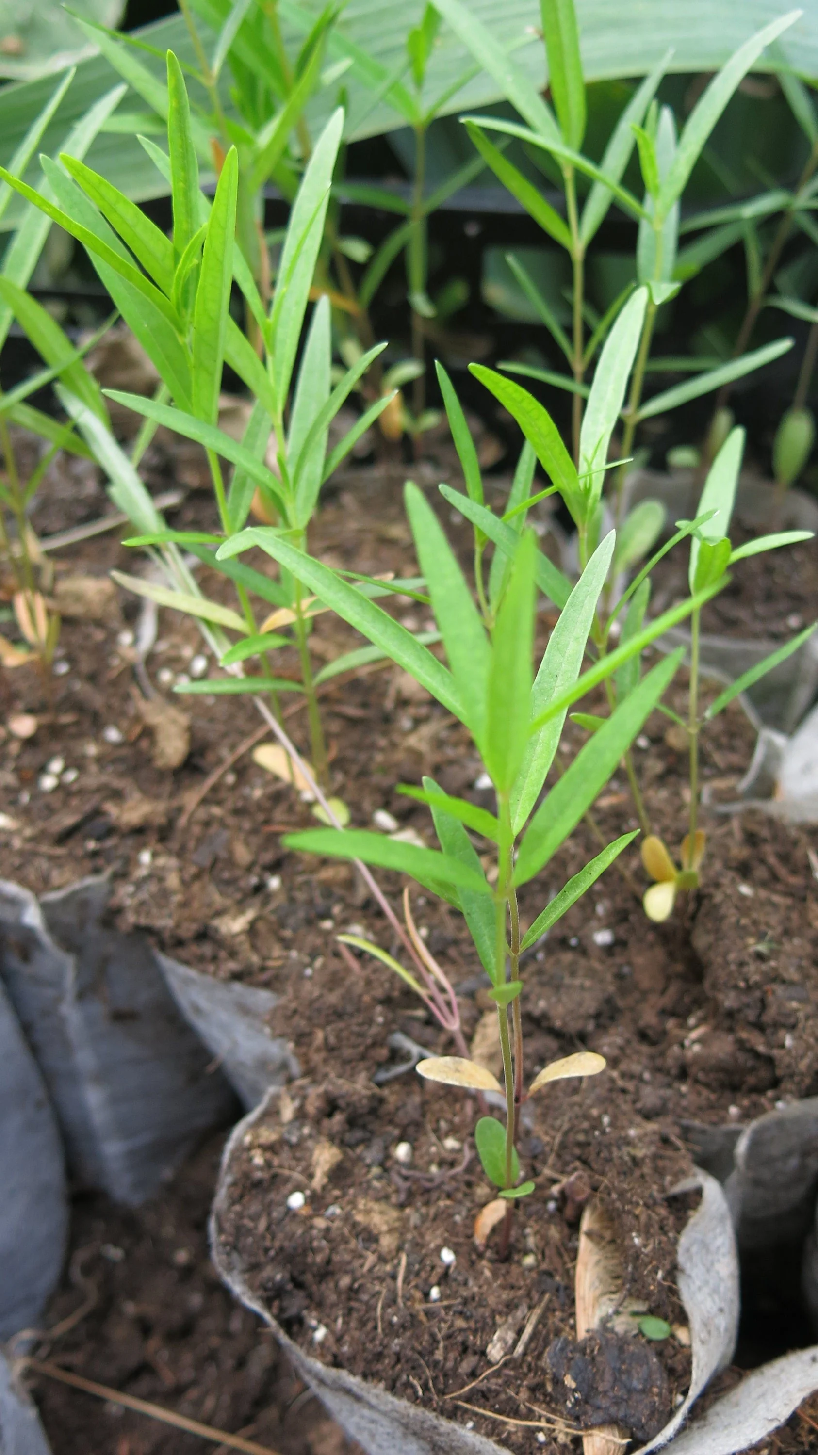 Showy milkweed asclepias speciosa starter plant. Host plant for monarch butterflies. Flowers are attractive to other butterflies and pollinators. Native to western US east to Michigan. Sun loving and for medium to dryer soils. Many native milkweeds are slow growing their first few seasons and need to be kept an eye on so as not to be out competed or munched on by bunnies.