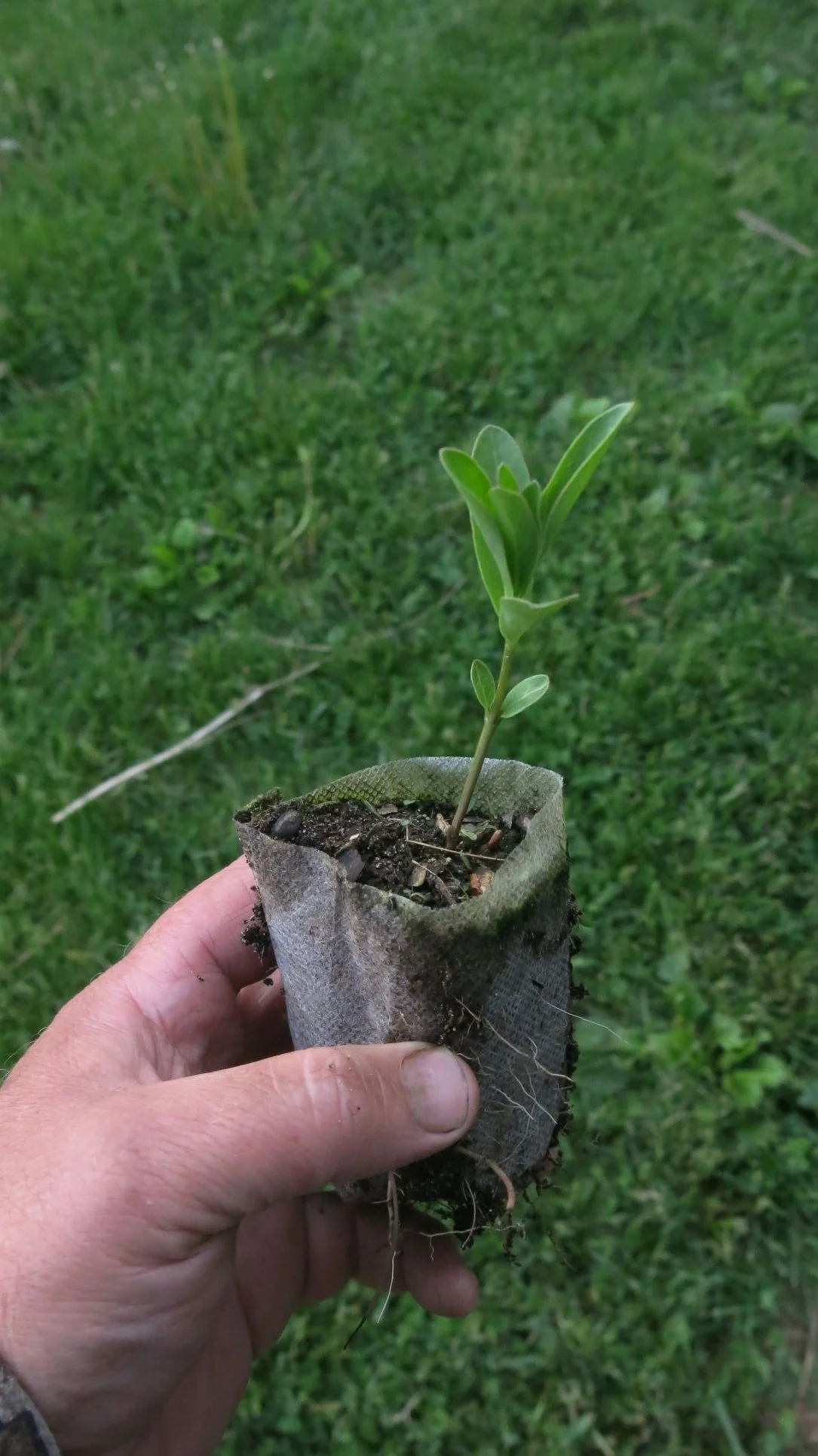 All of our plants are grown in biodegradable fabric pots. The containers are around 4"x4 1/2" May be planted in the pot or removed. If kept on, I suggest ripping the sides of the pot for easier root penetration. Milkweeds are slow growers, so I would tear them off.