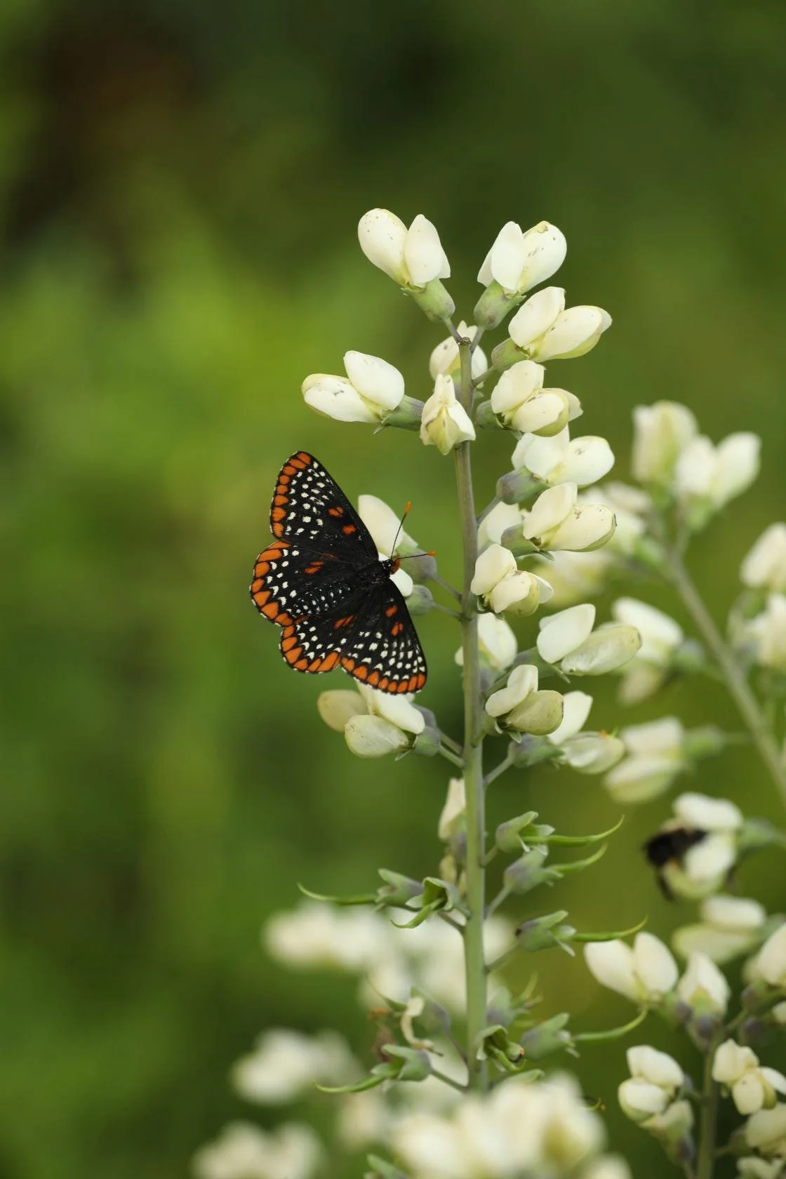 Wild white Indigo starter plant (baptisia alba). White indigo is a standout plant for the sunny butterfly pollinator garden. Rather slow growing, but worth the wait with white spikes of flowers in early to mid summer. Host plant for several butterfly species. These are slow growing and can take 2-3 years to produce flowers. They will have a much smaller root system that some other plants we sell and need to be watched to make sure they are not out competed till they mature.